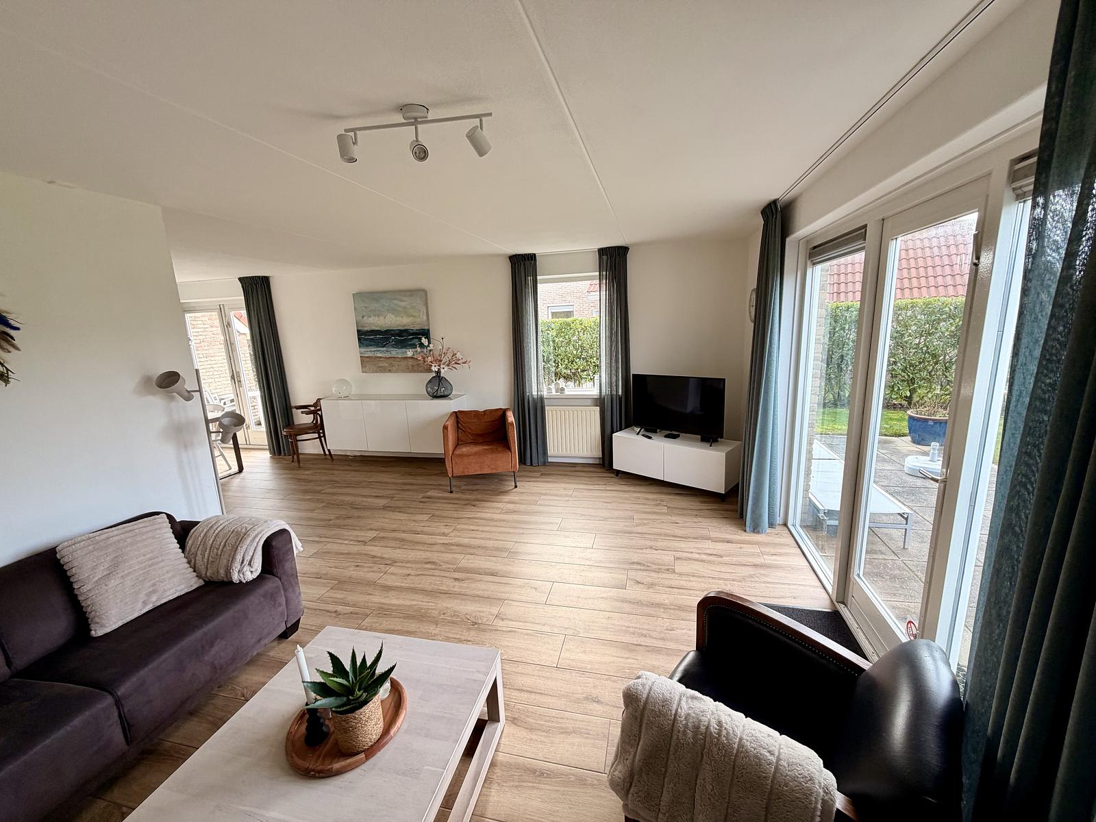 Grote omheinde tuin en lekker dicht bij de zee.